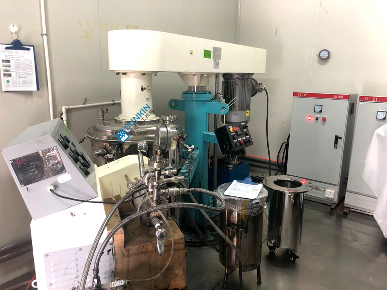 浙江XX電子材料有限公司購買液壓升降籃式研磨機(jī)、電動升降分散攪拌機(jī)等使用現(xiàn)場。咨詢熱線:400-162-8786公司總機(jī):0551-67707017電子郵箱:info@bunkinchina.com