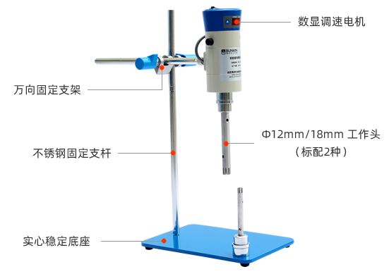 設備帶有鎖緊及升降手柄,能夠快速升降和固定;均質(zhì)頭快拆式設計,更換方便,清洗容易。
