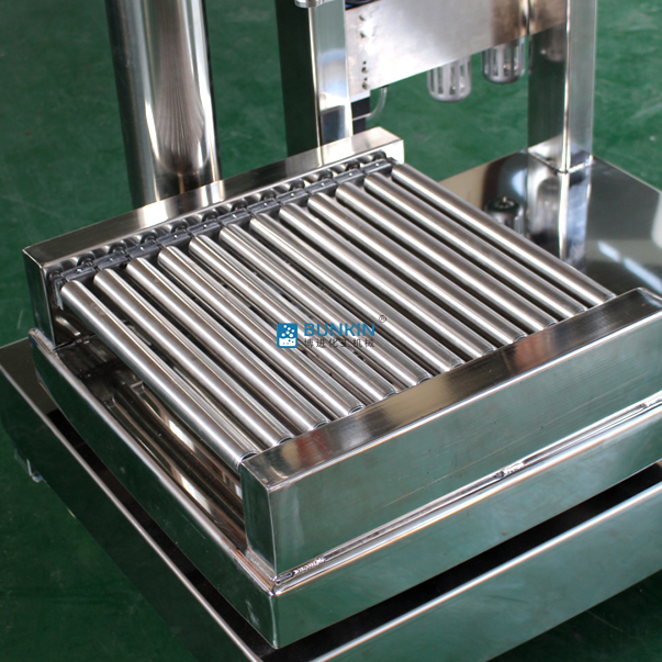 個(gè)性化設(shè)計(jì),可一人完成操作,設(shè)定指定灌裝量,灌裝按鈕一鍵完成自動(dòng)清零,自動(dòng)去皮功能。采用輥軸輸送,可隨操作工人習(xí)慣調(diào)整放桶位置均可灌裝。