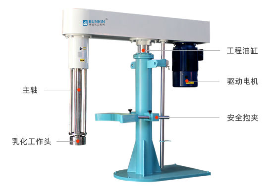 液壓升降乳化機是通過機械外力作用的方法使液-液、固-液物料顆粒粒徑變窄,使一種相均勻分布到另一種或多種相中,達到細化均質、分散乳化效果,從而形成穩(wěn)定的乳狀液的狀態(tài)。液壓升降乳化機工作頭由不銹鋼鍛件精制而成,根據(jù)不同乳化要求設備多種工作頭結構,液壓升降乳化機通過液壓控制升降。