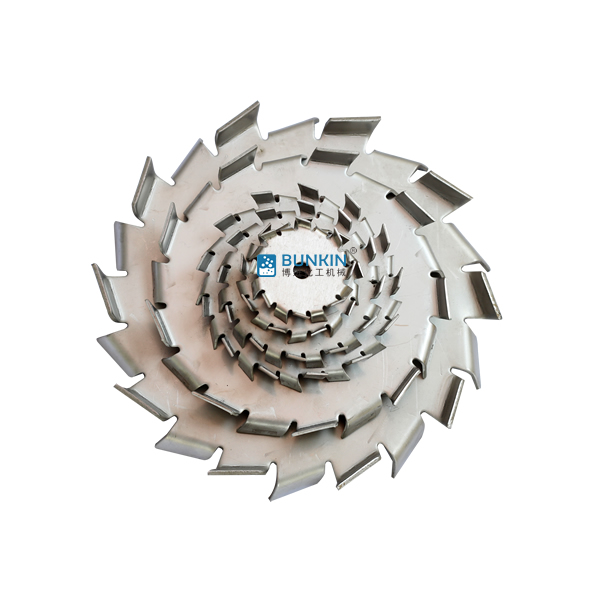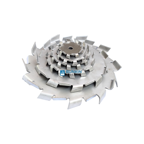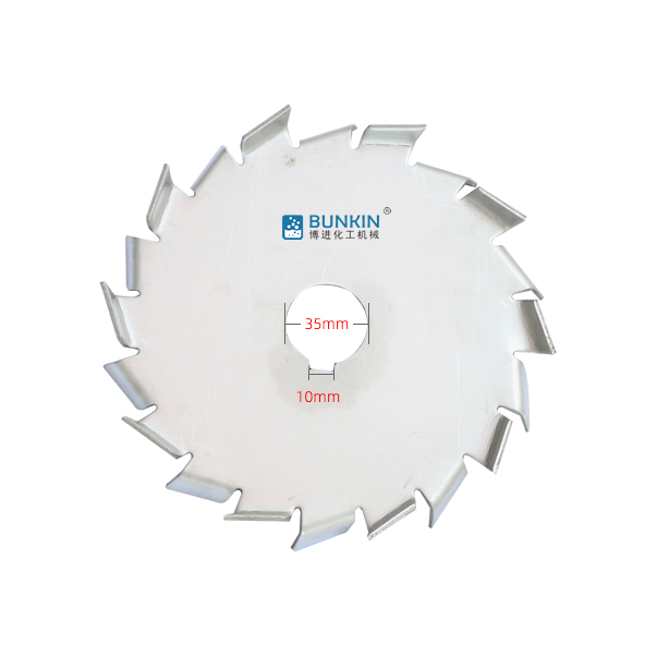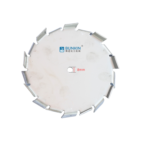 分散盤是配套于高速分散機的配件,連接于高速分散機主軸。分散機主軸高速運轉時,分散盤上下方呈現(xiàn)旋轉狀態(tài),同時會在邊緣2.5-5mm處形成湍流區(qū)。分散盤上下鋸齒對涂料、油漆、干粉、固—液等物料進行高速的剪切、撞擊、粉碎、分散,以便達到迅速混合、溶解、分散、細化的狀態(tài)。
