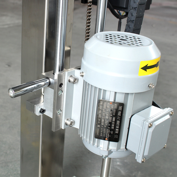 設(shè)備帶有鎖緊及升降手柄,能夠快速升降和固定;分散盤采用內(nèi)六角螺栓與主軸固定,能夠方便快速拆卸更換,清洗容易;帶有夾桶裝置,可以快速將攪拌桶固定,防止桶在工作中發(fā)生位移造成安全事故。